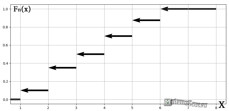 Возвращает вероятность того, что значение из интервала находится внутри заданных пределов. Если верхний_предел не задан, то возвращается вероятность того, что значения в аргументе x_интервал равняются значению аргумента нижний_предел.