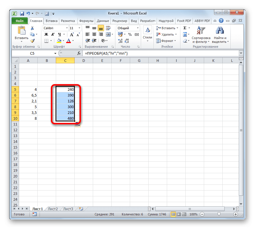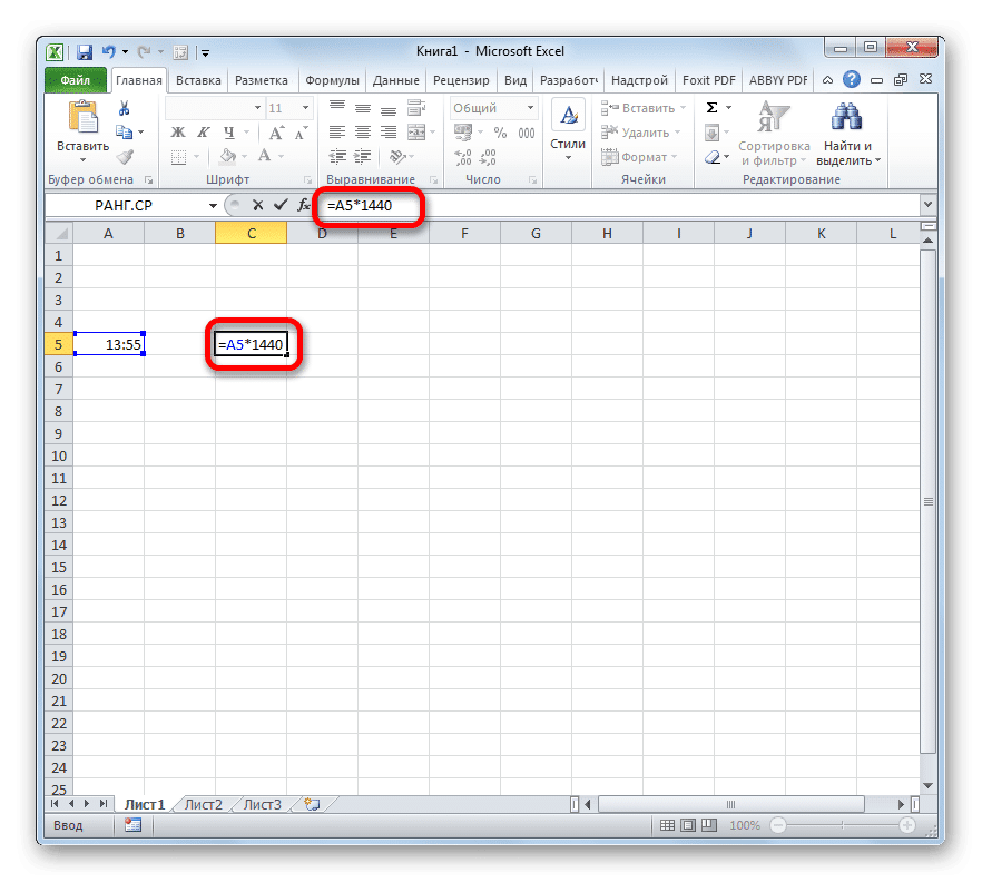 Результат, возвращаемый функцией МИНУТЫ (MINUTE), никогда не будет числовым значением, поэтому нужно сохранить исходную функцию СУММ (SUM), которая возвращает общее количество часов для значения в ячейке. Этот результат можно использовать в дальнейших вычислениях. Строку, содержащую общее количество часов, конечно же, можно скрыть.