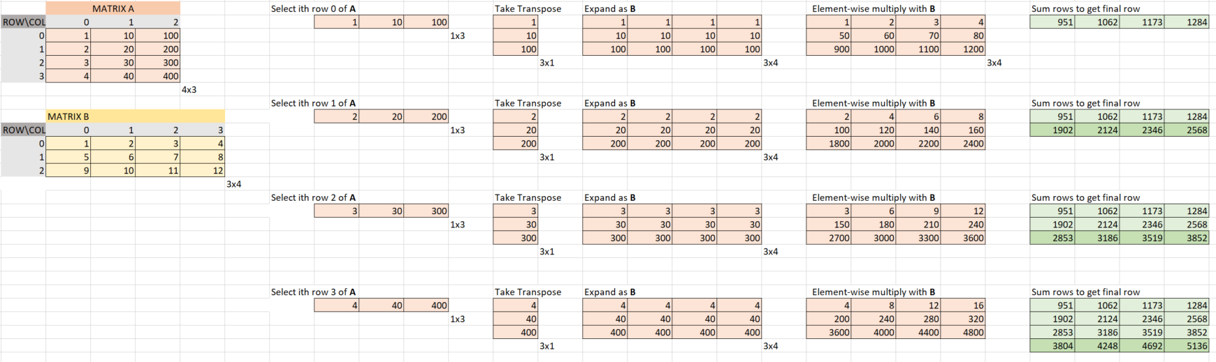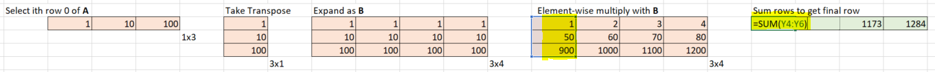 виртуальный массив умножается на матрицу A с помощью
