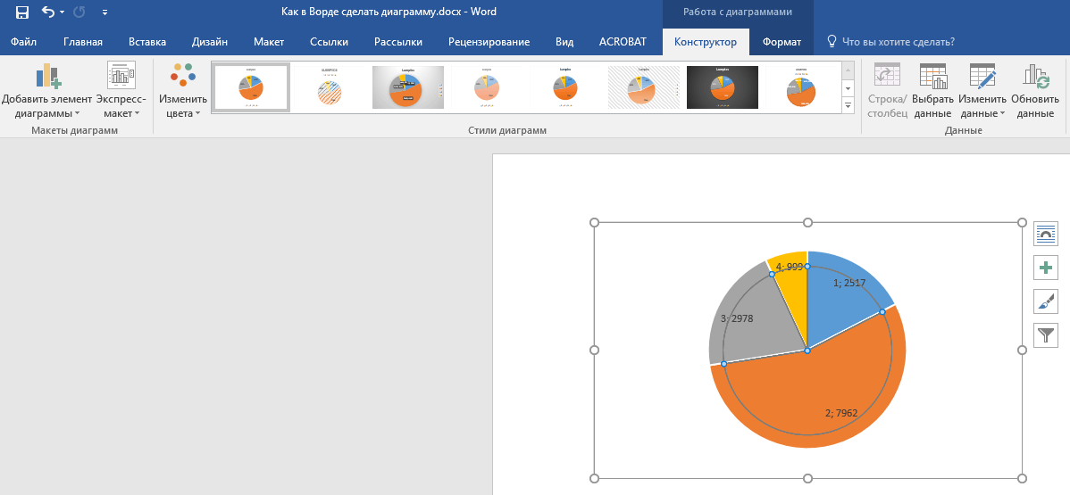 - Кликните в любом месте диаграммы, чтобы активировать инструмент «Работа с диаграммами»