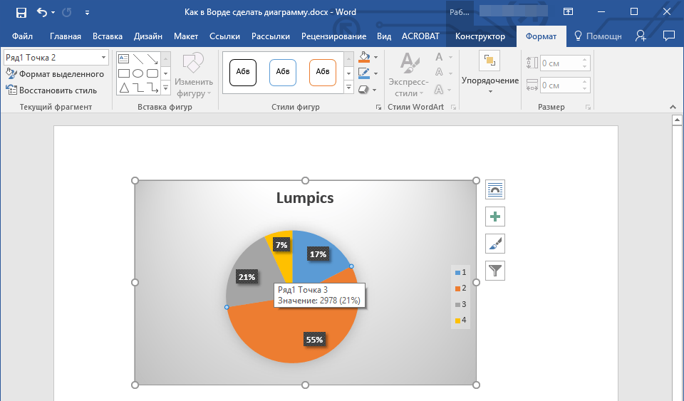 . К примеру, у вас есть график со столбцами или круговая диаграмма, выбрав подходящий макет, вы сможете из нее сделать диаграмму с процентами в Ворде.