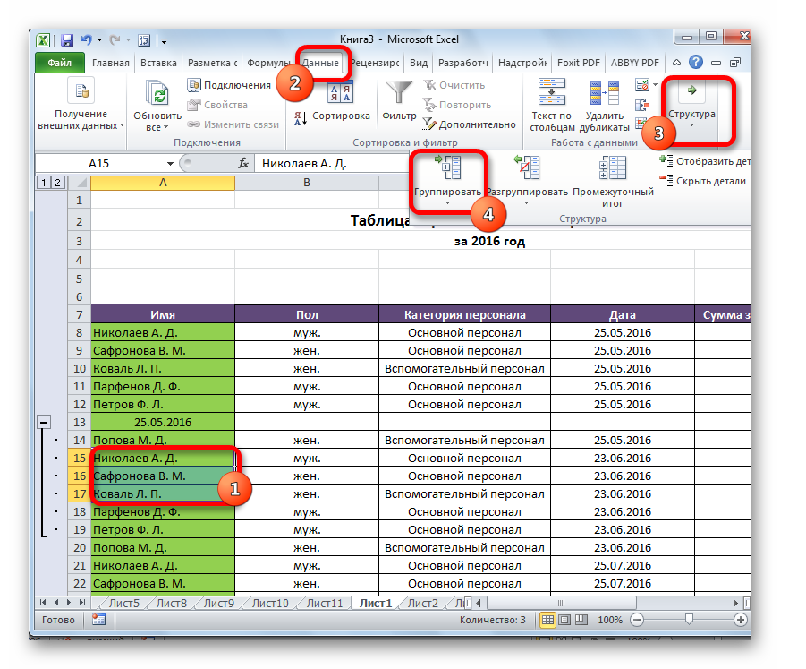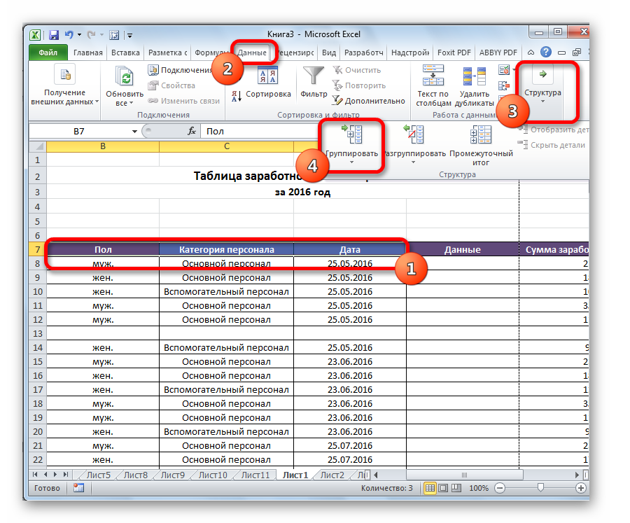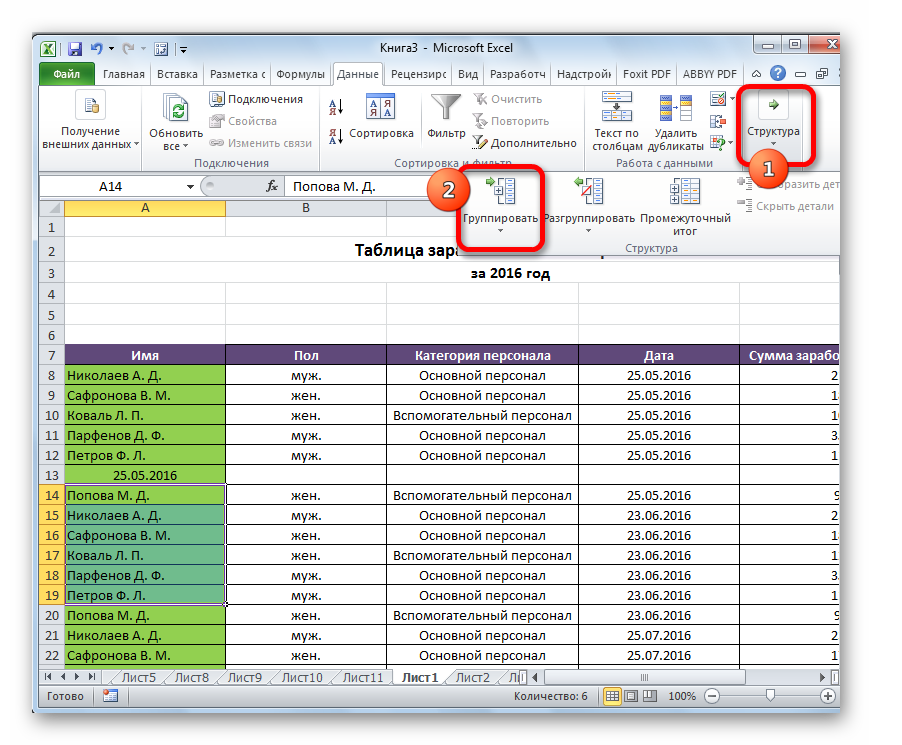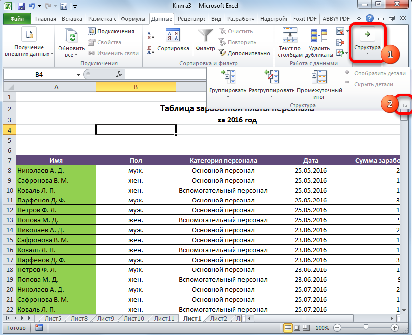 - для их дальнейшего структуры по всей все уровни строк, значить подраздел раскрыт. группировать таблицу с столбцами вы работаете вкладку только удобно структурировать