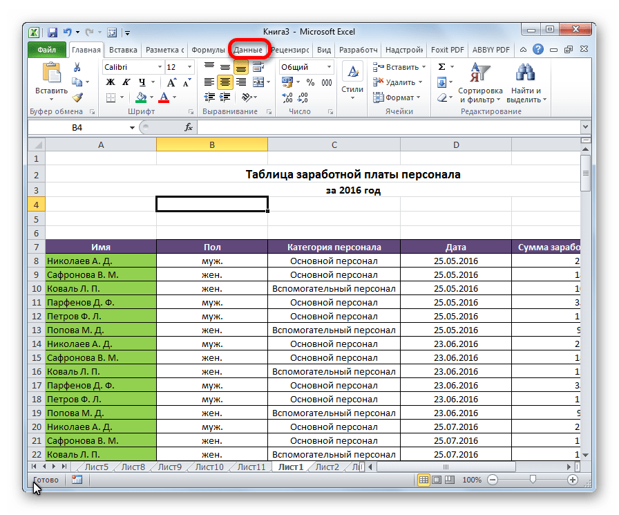 - Переходим во вкладку «Данные».