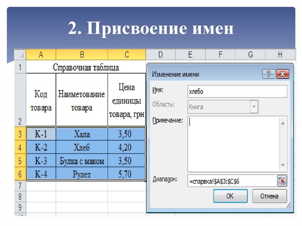 Данный способ является самым быстрым способом присвоить имя ячейке или диапазону в Excel. Чтобы воспользоваться им, выполните следующие шаги: