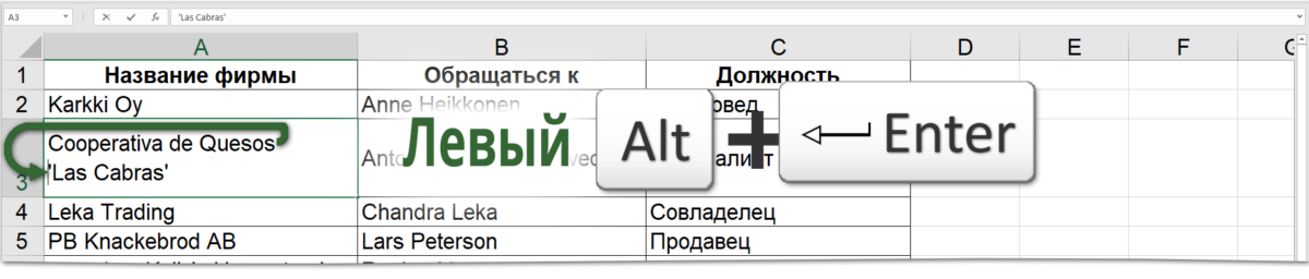 Шаг 4. Устанавливаем текстовый курсор перед словом «’Las Cabras’» и смело жмем левый Alt+Enter: