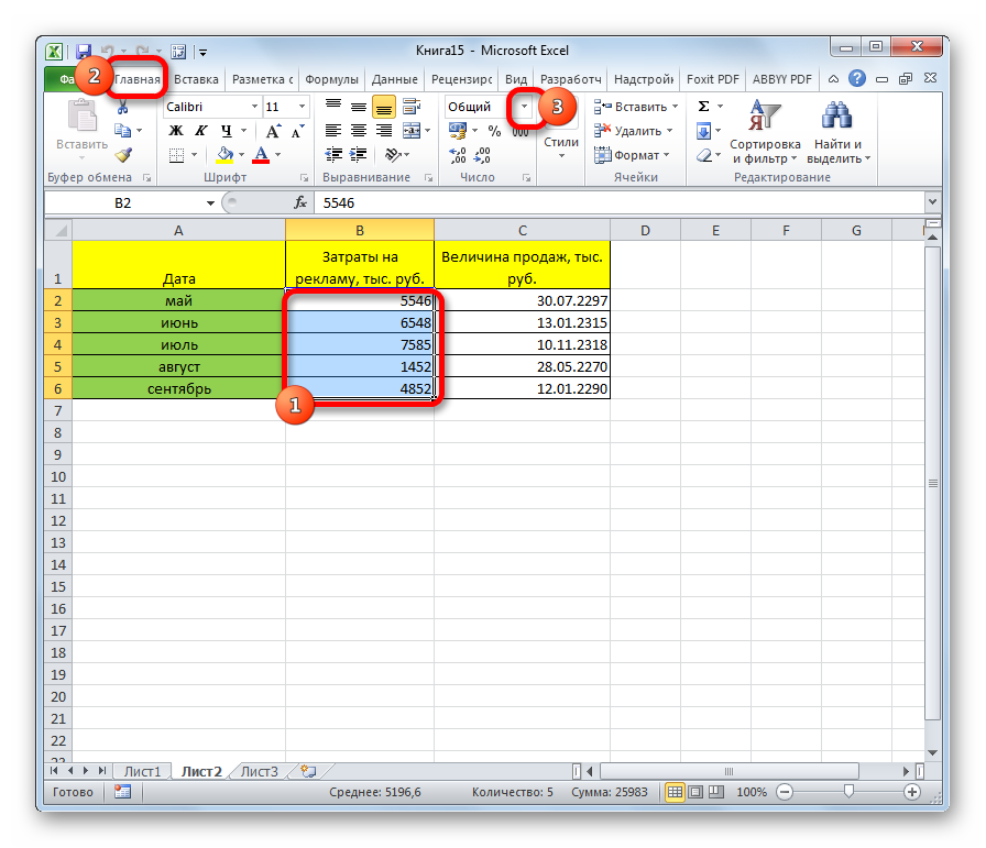 В ленте инструментов находятся специальные элементы, позволяющие изменить формат ячеек. Использование этого метода намного быстрее предыдущего. Пошаговое руководство: