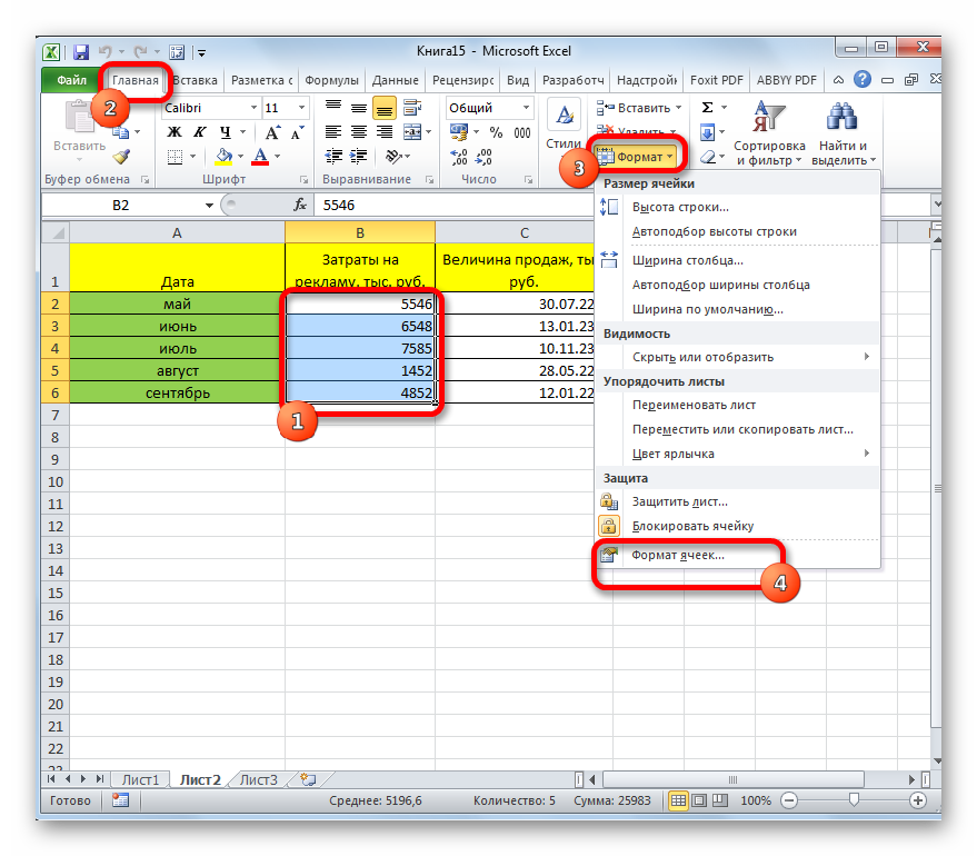 Самый популярный способ изменения форматов диапазона данных – это использование контекстного меню.