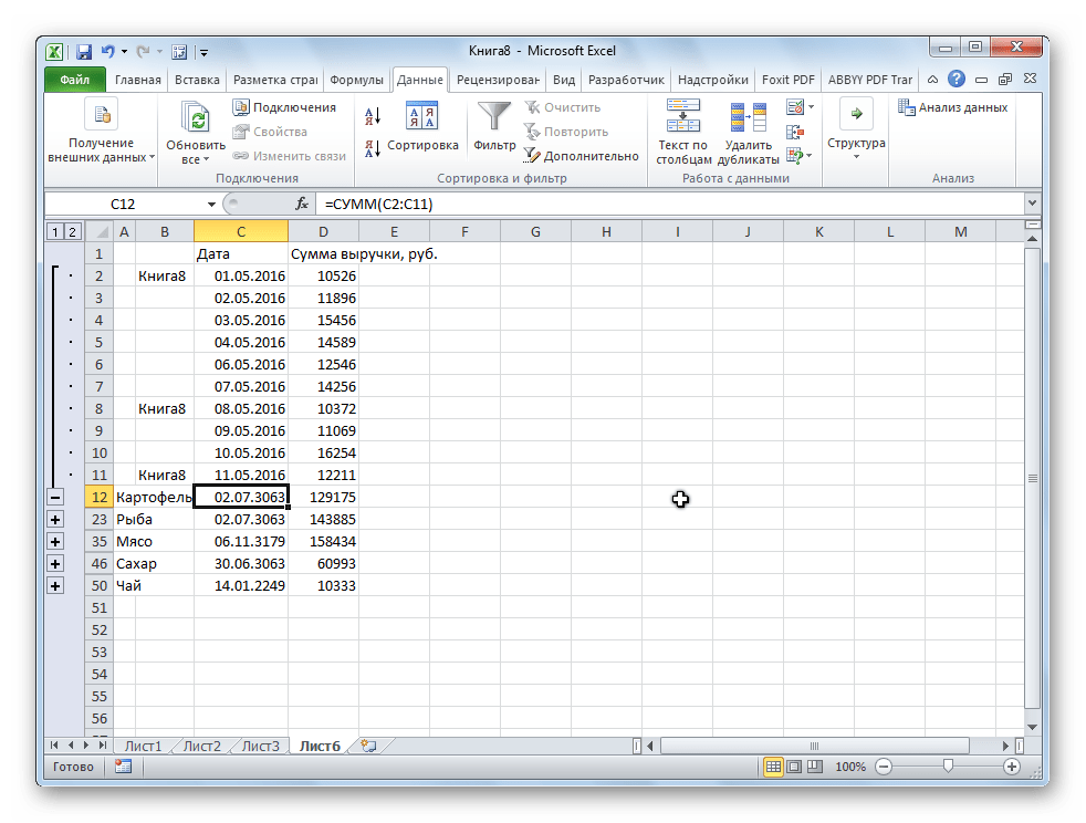 Сводные данные будут доступны на листе с именем Сводные.