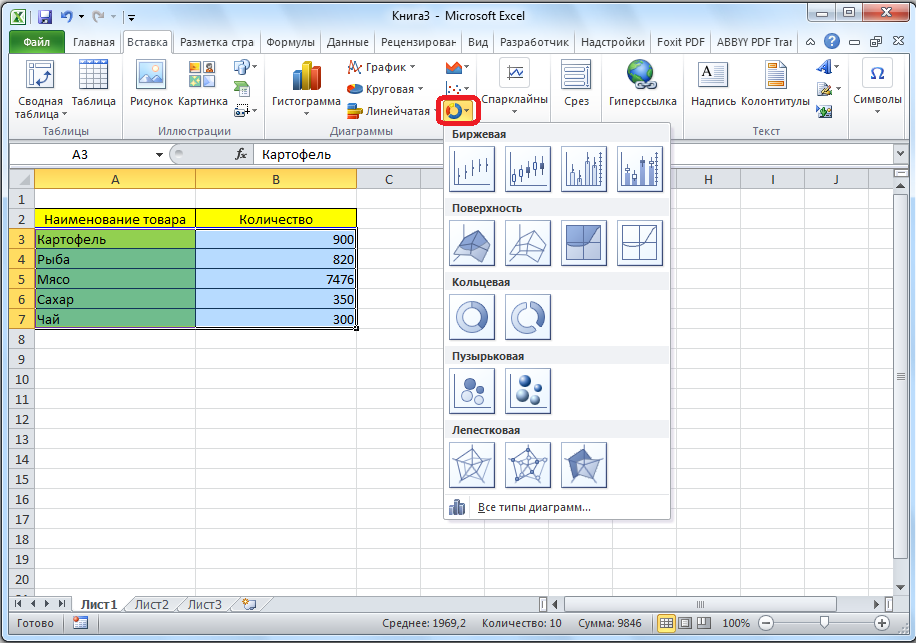 Способ 2. Как сделать процентную диаграмму в Excel