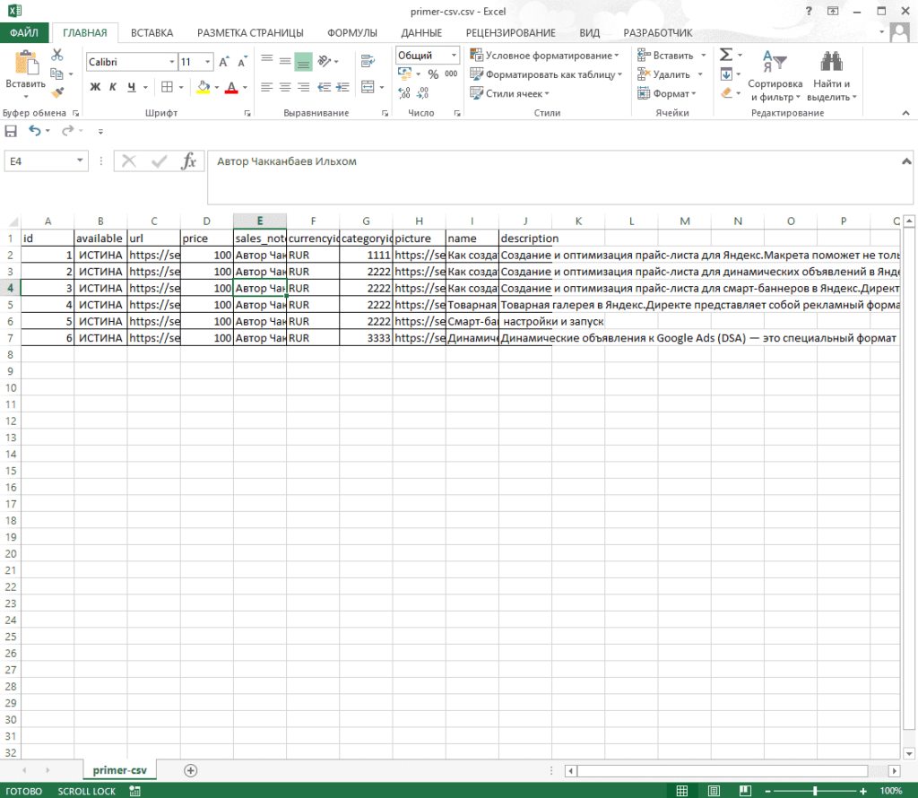 В качестве примера будет использоваться таблица с данными, которую можно будет скачать ниже.