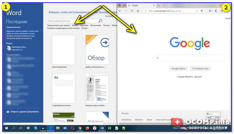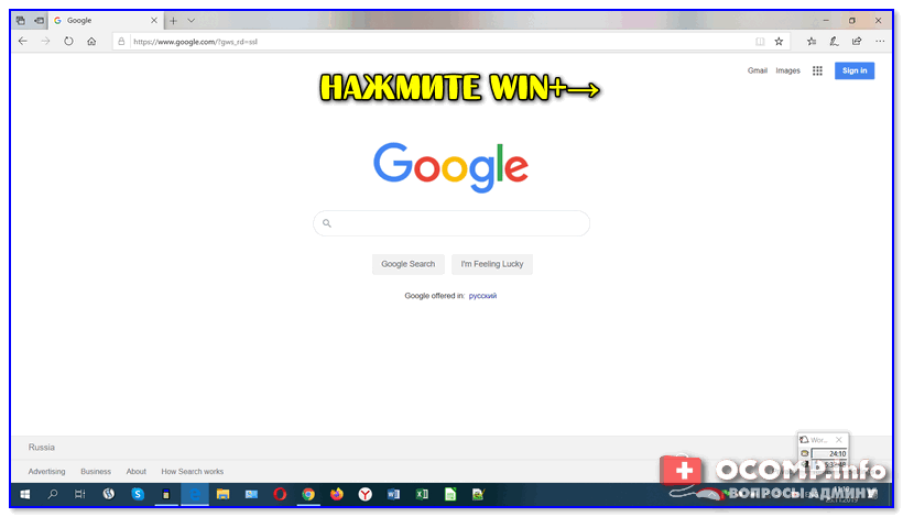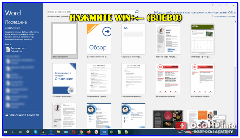 Далее запускаете Word (или ту вторую программу, которая нужна) и нажимаете сочетание Win + ← (стрелка влево) .