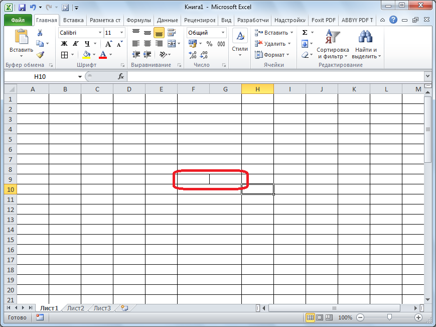 Как видим, несмотря на то, что мы ничего не делили, а наоборот соединяли, создается иллюзия разделенной ячейки.