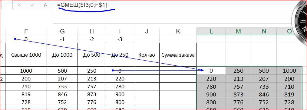 В данном случае необходимо добавить сверху таблицы новую строку и пронумеровать в ней нужные столбцы в обратном порядке, начиная с нуля. Удобно это сделать с помощью простой формулы, как на рисунке. Первый нуль мы указываем, конечно, сами с клавиатуры.