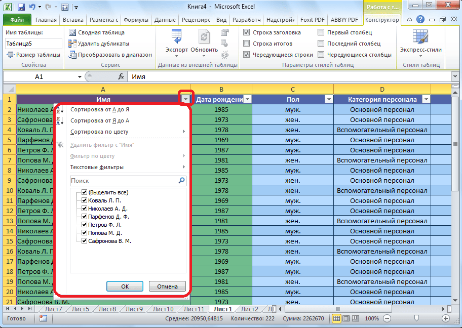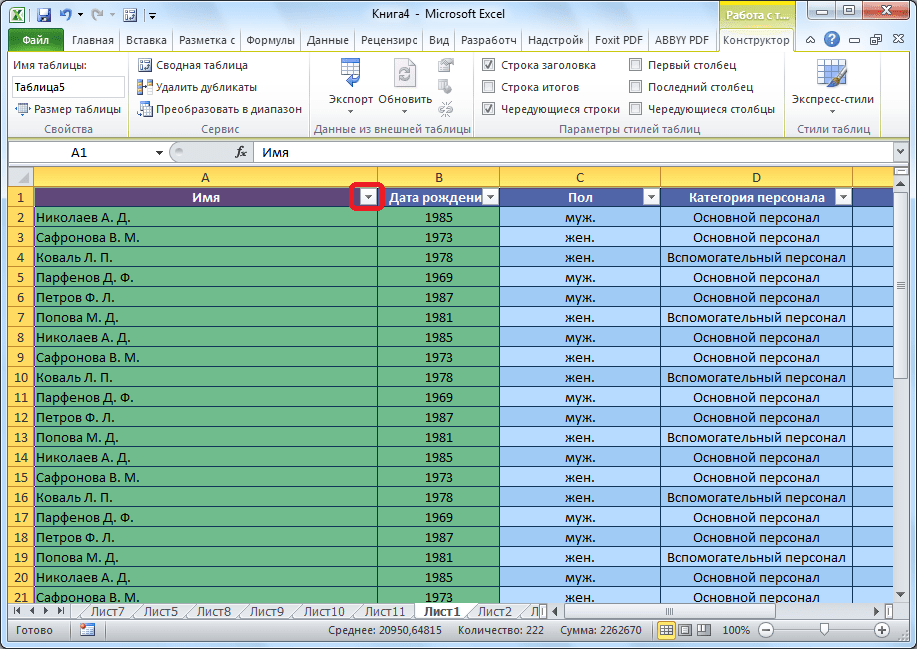 Сортировку и фильтр можно также активировать, превратив область данных, с которой вы работаете, в так называемую «умную таблицу».