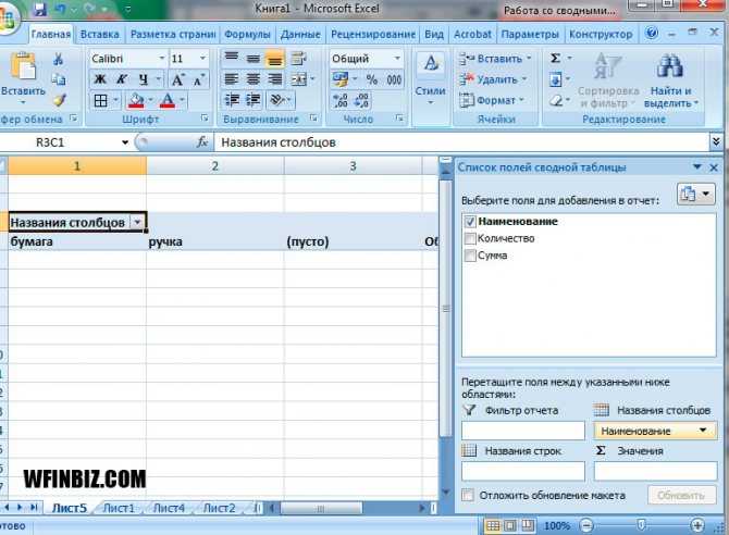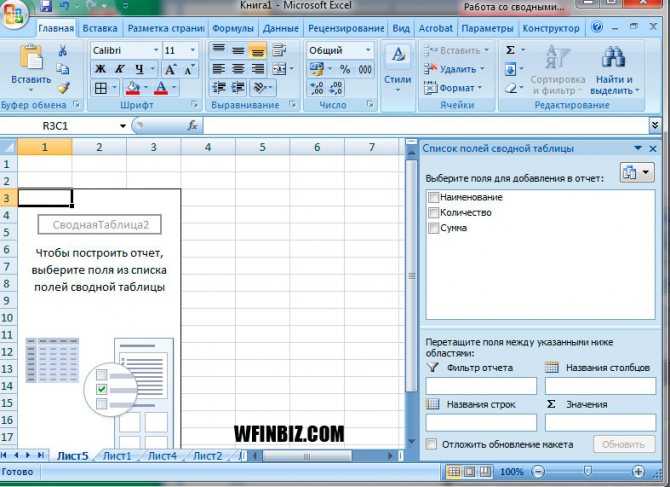 Создание сводной таблицы вручную