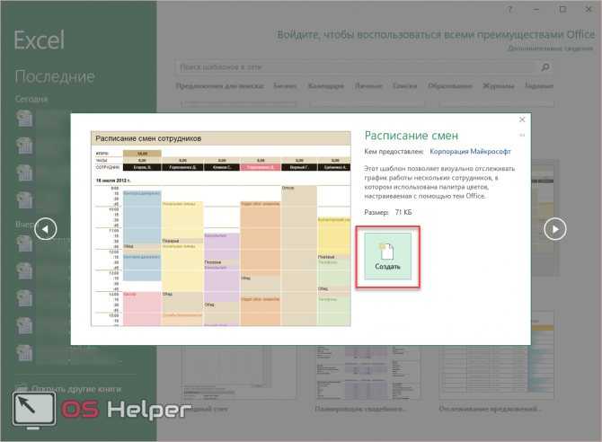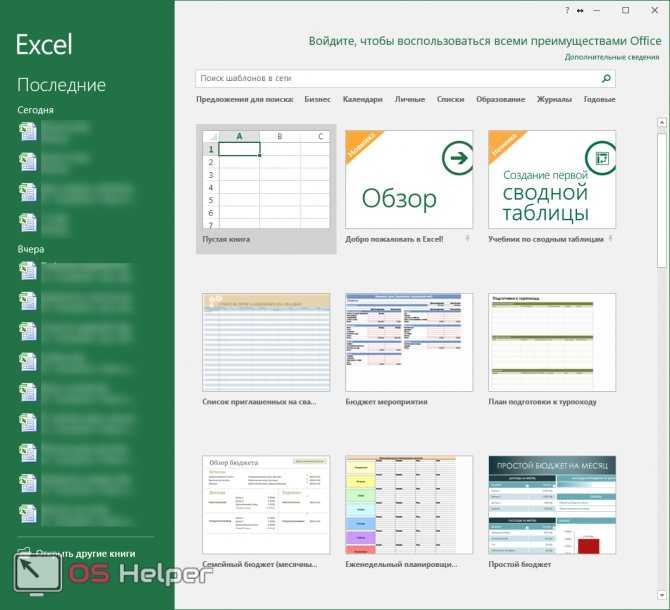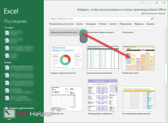 Готовые шаблоны в Excel 2016