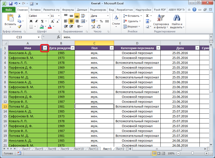 Фильтрация данных Excel помогает быстро задать условия для тех строк, которые необходимо отображать, а остальные строки, не подходящие под данные условия, скрыть.