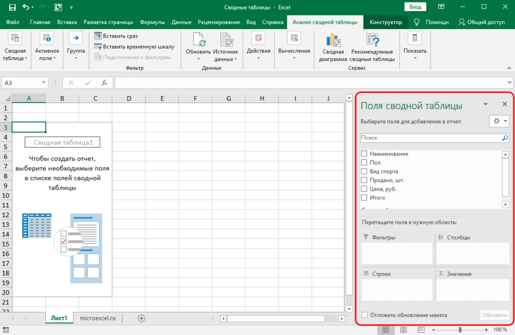 В этой статье подробно рассказывается, как работать со сводными таблицами, используя данные не с одного, а с нескольких листов