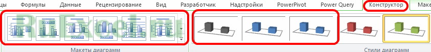 Изменить внешний вид сводной таблицы можно на вкладке Конструктор.