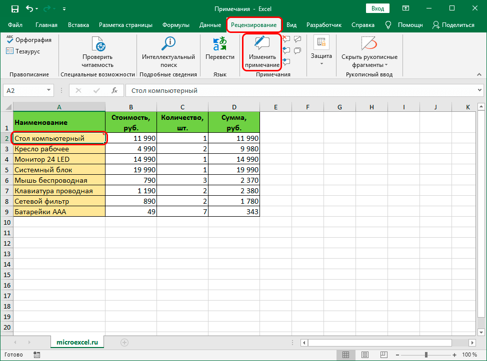 - Выполните команду на ленте: Рецензирование – Примечания – Изменить примечание