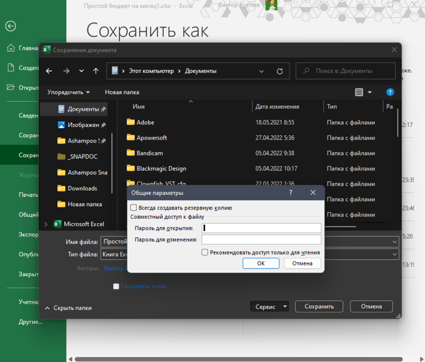 Здесь, вы заметили, есть два разных поля: Пароль для открытия и Пароль для изменения. Вы можете оставить последний пустым, если хотите ограничить права на редактирование, не ограничивая доступ к самому документу.