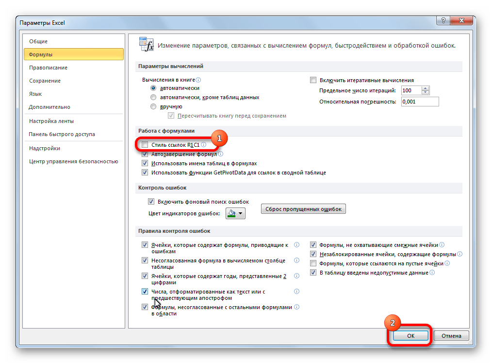 - Уберите флажок Стиль ссылок R1C1 (R1C1 Reference Style).