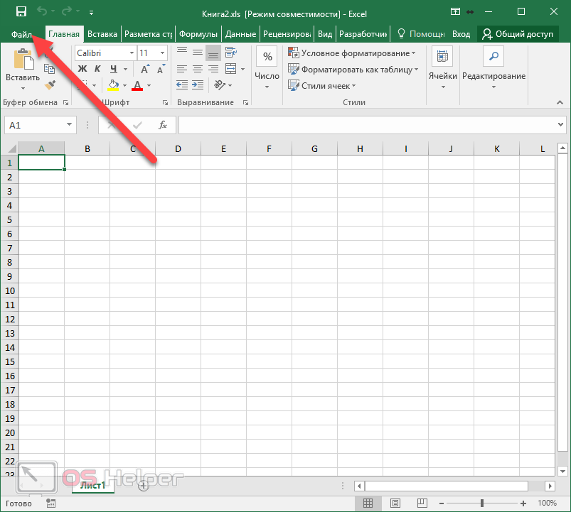 - Нажмите на пункт меню «Файл».