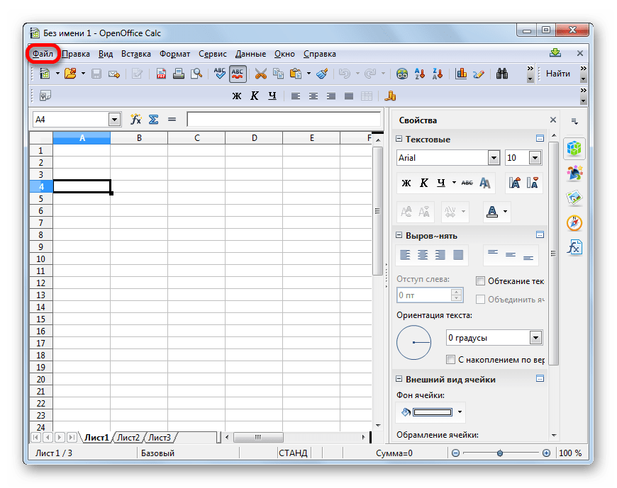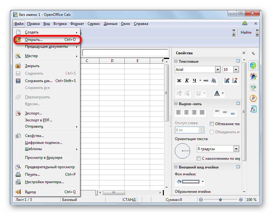 Данное приложение является аналоговым по отношению к пакету Microsoft Office. В отличие от предыдущего софта в Apache Open Office Calc расширение xlsx не считается основным – создать и сохранить книгу с помощью утилиты не получится. Этапы действий юзера: