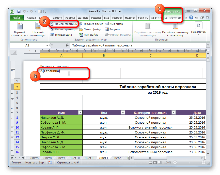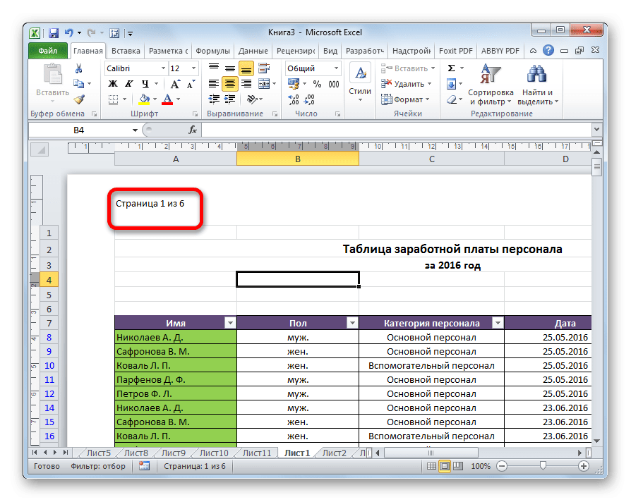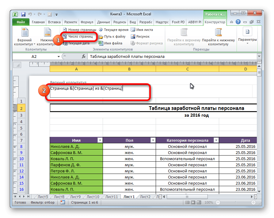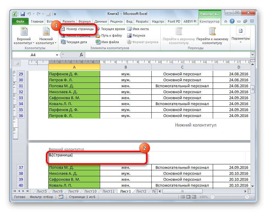 Вы можете нумеровать страницы в Excel, используя верхние и нижние колонтитулы. По умолчанию они скрыты, расположены в нижней и верхней областях листа. Его особенность в том, что записи, вносимые в эту область, являются сквозными, то есть отображаются на всех страницах документа.