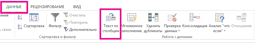 Теперь перейдите во вкладку «Данные» и выберите пункт «Текст по столбцам».