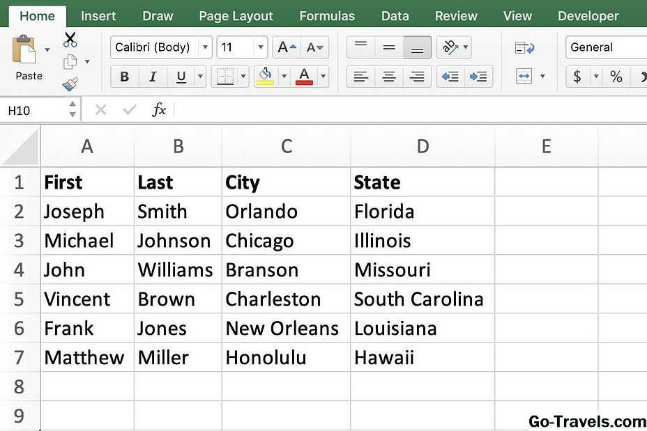 В обоих примерах мы начнем с образца электронной таблицы Excel. Этот образец представляет собой список заказов на покупку различных продуктов.