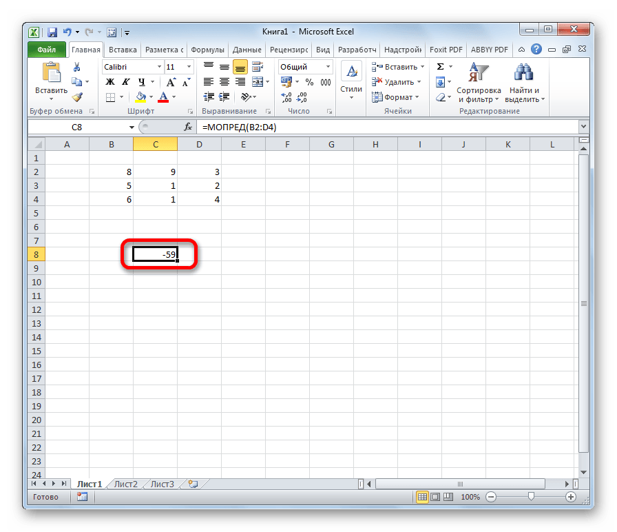 Её определитель: