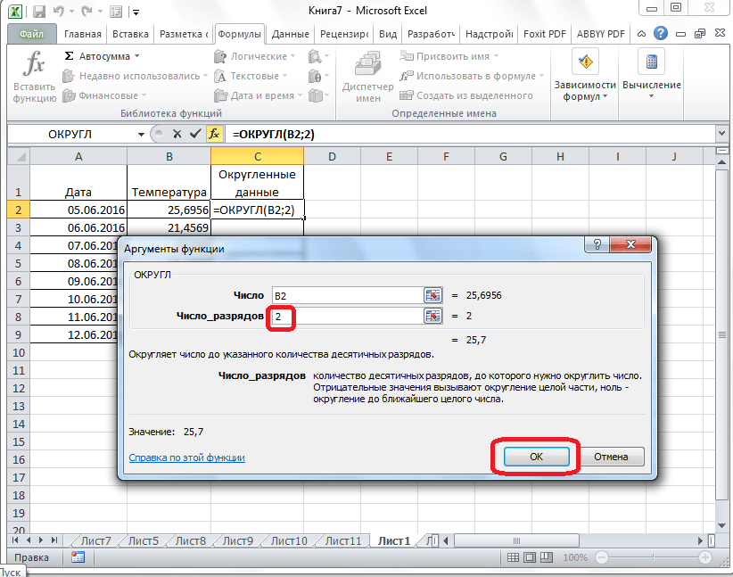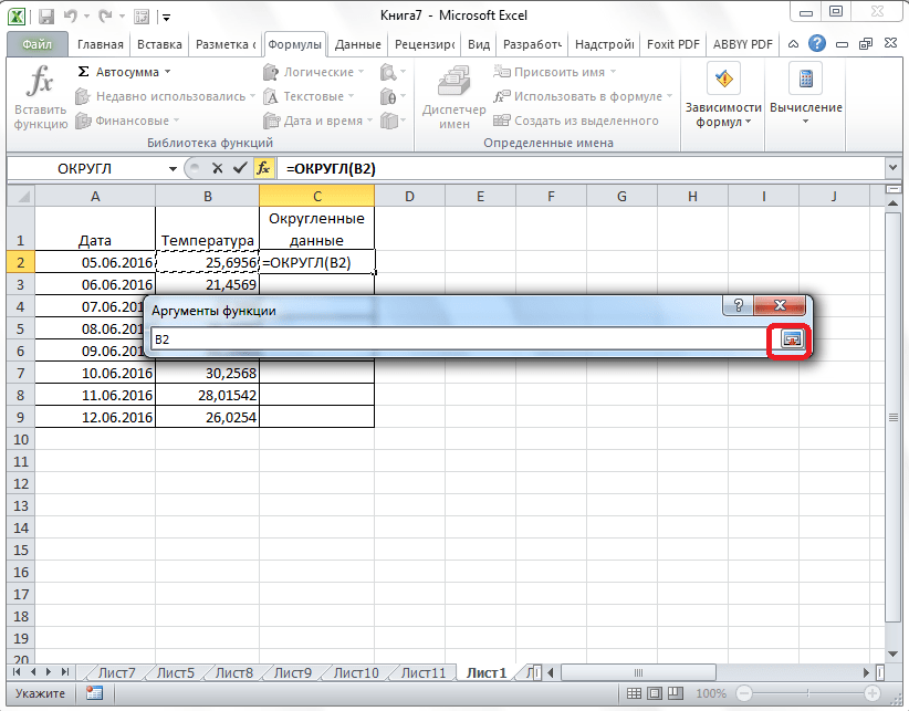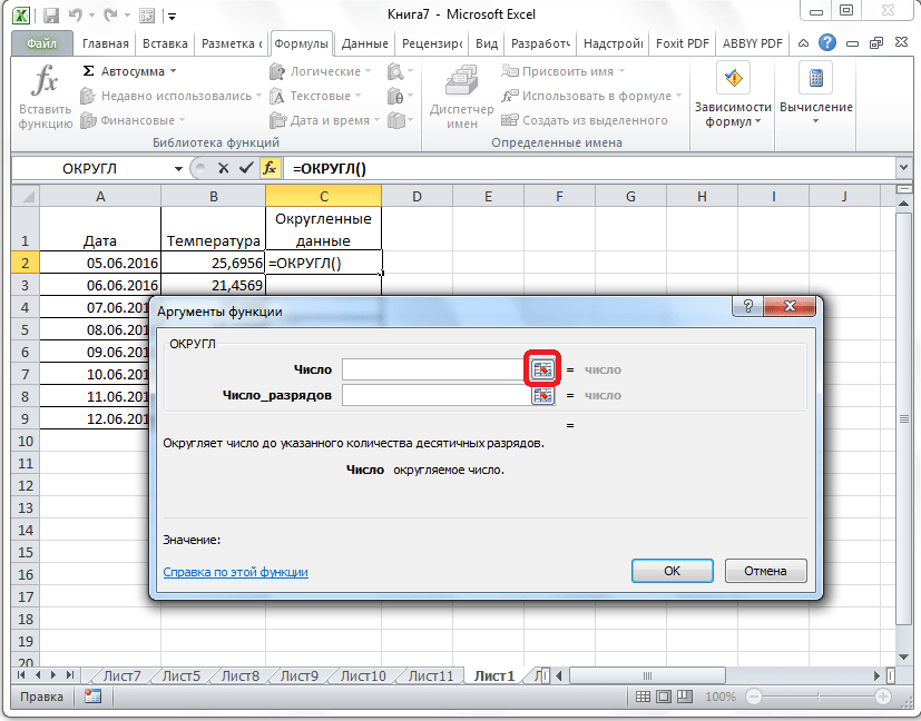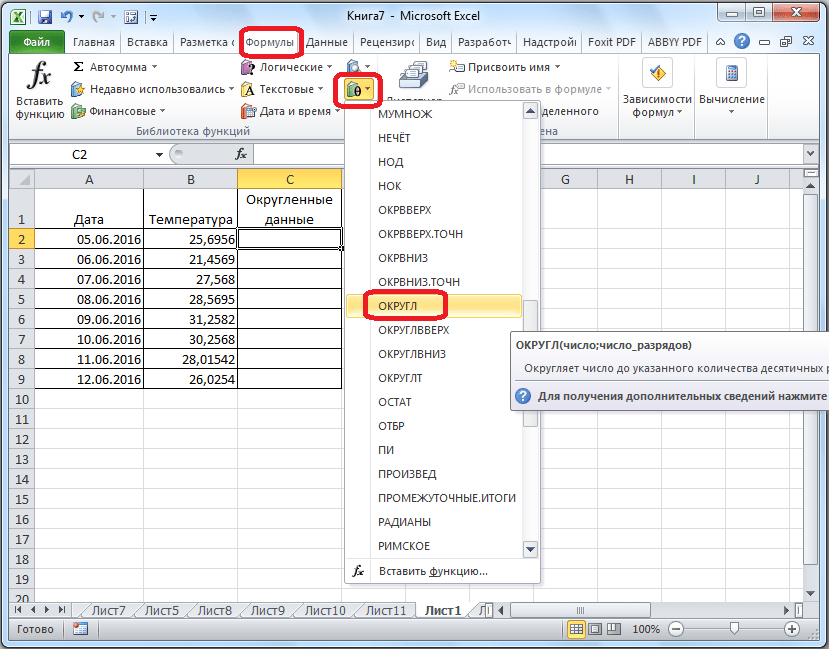 Существует и несколько другой способ введения функций округления. Его особенно удобно использовать, когда есть таблица со значениями, которые нужно преобразовать в округленные числа в отдельном столбике.