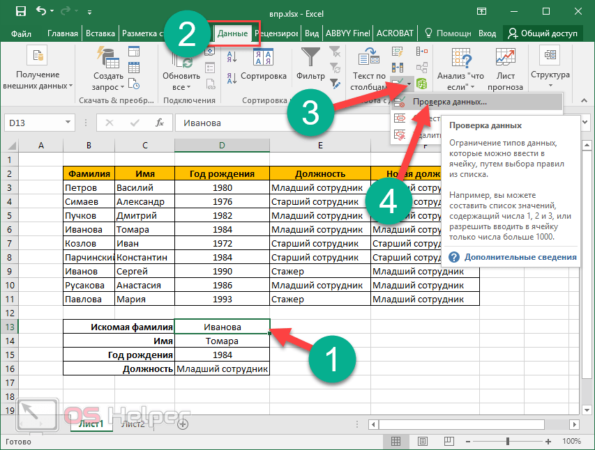 Перейти в раздел книги «Данные» – «Проверка данных».