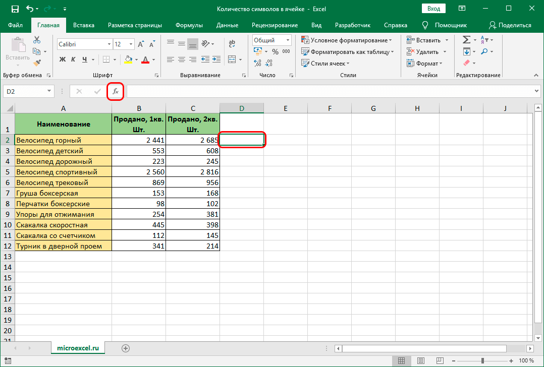 Щелкните ячейку B2.
