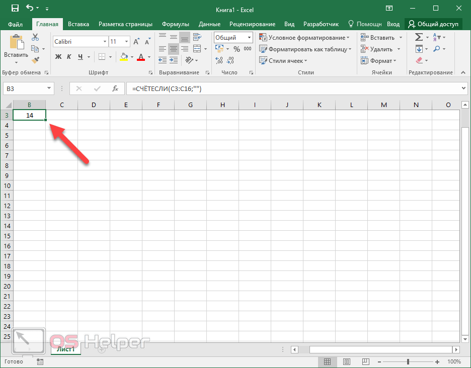 - Благодаря этому вы увидите какое-нибудь число. Этому значению будет соответствовать количество тех ячеек, которые удовлетворяют вашему критерию. В данном случае мы выделили 14 пустых ячеек.