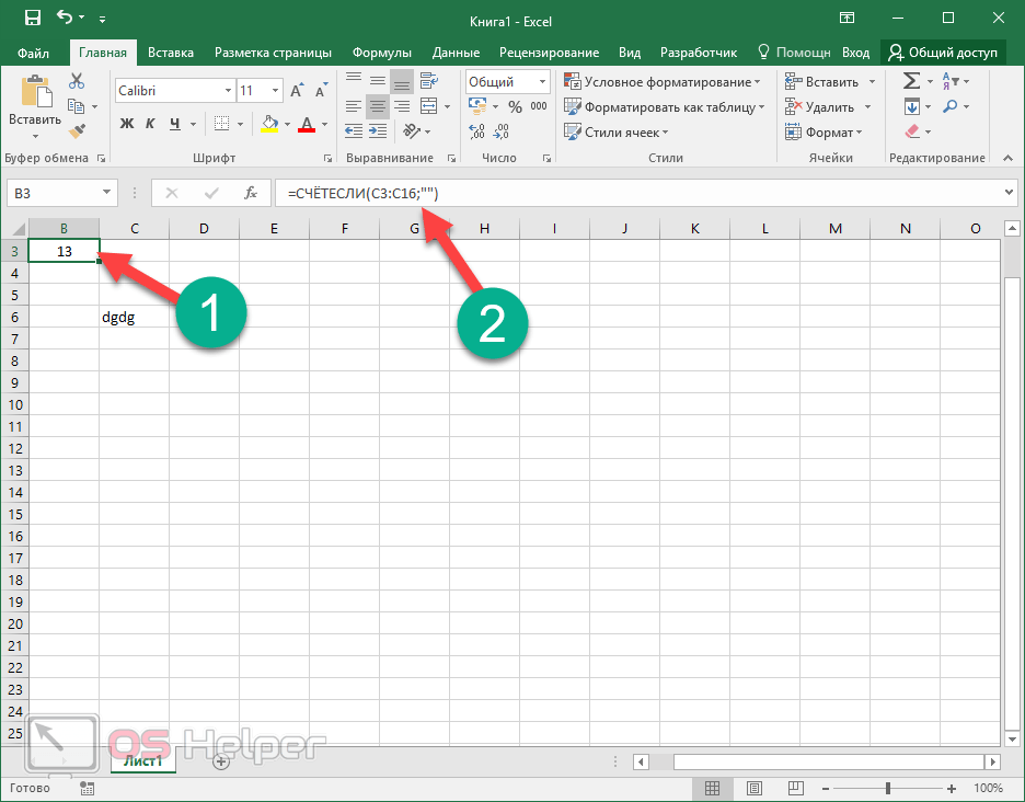 - Во втором поле, в качестве примера, можно указать две пустые кавычки. Данная запись означает пустой текст. То есть в клетке ничего не должно содержаться.