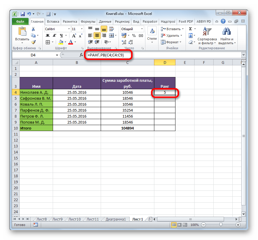 Функция РАНГ() при применении возвращает в виде результата номер позиции элемента в конкретно определённом списке. Сам результат представляет собой число, которое показывает, какое бы место занимал элемент в этой строке, если бы указанный диапазон был отсортирован по возрастанию или по убыванию.