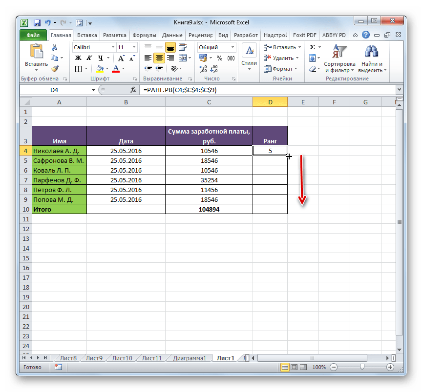 Как видим, таким образом, формула скопируется, а ранжирование будет произведено на всем диапазоне данных.