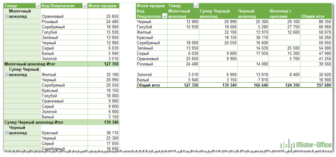 Сводные таблицы позволяют менять визуальное представление данных, представляя их с новой точки зрения, не меняя сам источник.