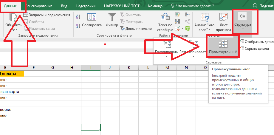 Создание промежуточных итогов в Excel