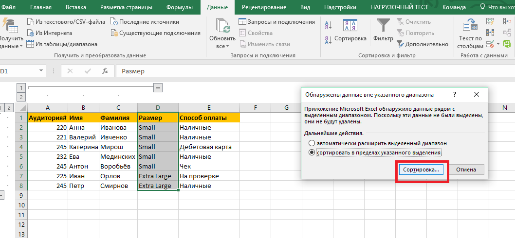 В появившемся окне выберите пункт «Сортировать в диапазоне указных значений» и нажмите на клавишу «ОК».