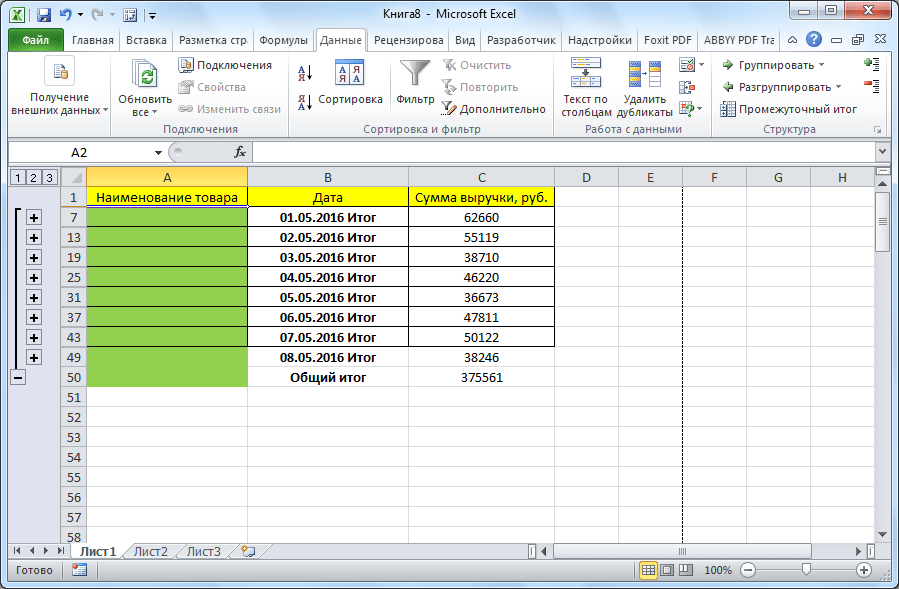 Отображение и скрытие промежуточных итогов