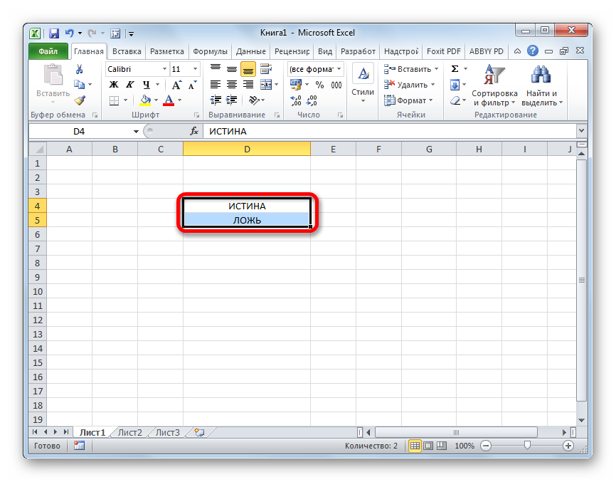 Довольно интересным является тип логических данных. Он оперирует всего двумя значениями: «ИСТИНА» и «ЛОЖЬ». Если утрировать, то это означает «событие настало» и «событие не настало». Функции, обрабатывая содержимое ячеек, которые содержат логические данные, производят те или иные вычисления.