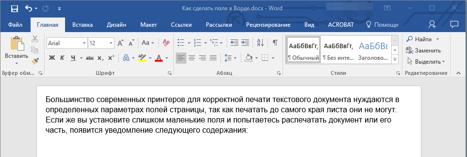 3. Большинству современных принтеров требуются определенные параметры полей страницы для правильной печати текстового документа, поскольку они не могут печатать до края бумаги. Если вы установите слишком маленькие поля и попытаетесь распечатать документ или его часть, появится уведомление со следующим содержанием: