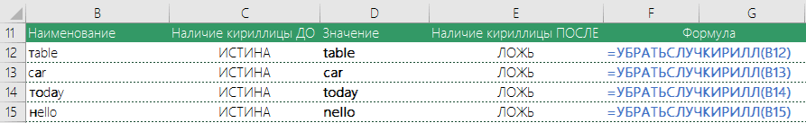 Такие ошибки накладывают ограничения на сортировку и поиск нужных данных. Для удаления этих ошибок служит функция =УБРАТЬСЛУЧКИРИЛ(ТЕКСТ), которая позволит заменить русские буквы на латинские.