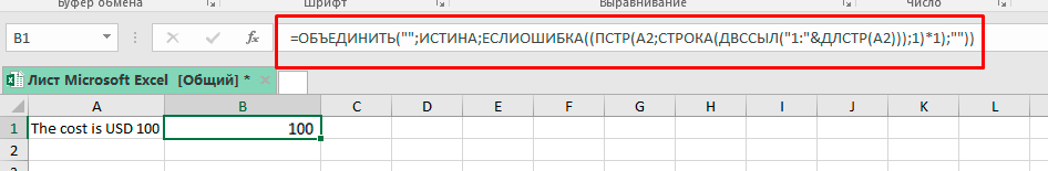 =ОБЪЕДИНИТЬ(«»;ИСТИНА;ЕСЛИОШИБКА((ПСТР(A2;СТРОКА(ДВССЫЛ(«1:»&ДЛСТР(A2)));1)*1);»»)) — и, наконец, все значения полученные ранее просто объединяются функцией ОБЪЕДИНИТЬ.