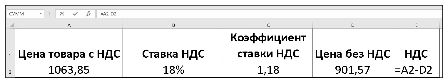 Довольно знакомая ситуация для финансистов в бизнесе. Приходит товар по определенной стоимости, в которую включен НДС. Необходимо его выделить и получить две цифры — цена товара без НДС и сам налог на добавленную стоимость.