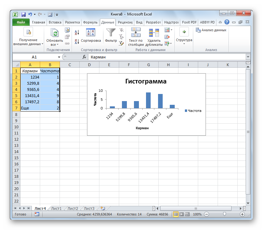 После того, как выбор сделан, на листе Excel формируется гистограмма.