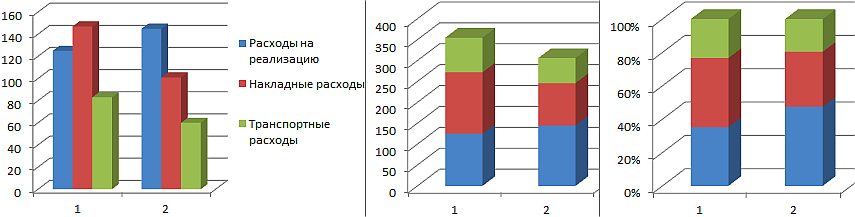 Для того, чтобы выполнить эти диаграммы в других версиях Excel вам пришлось бы выполнить дополнительные вычисления или воспользоваться сторонними средствами.